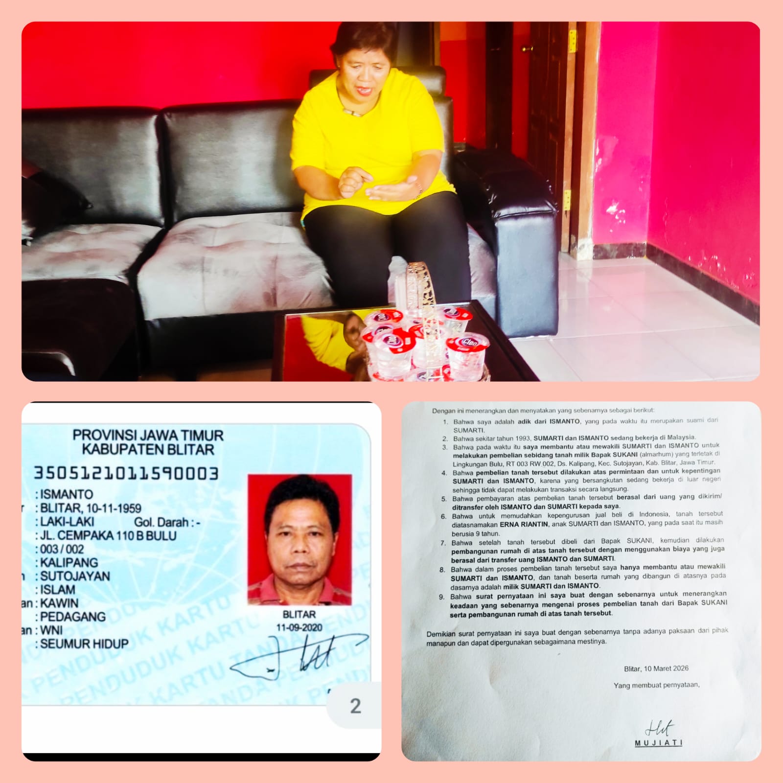 “Tanah dan rumah ini adalah hasil jerih payah saya dan ayah mereka. Kami bekerja keras jauh dari rumah hanya untuk memberikan tempat tinggal yang layak bagi keluarga terangnya Sumarti, Tapi kini anak kandung saya malah menjual rumah tersebut tanpa sepengetahuan saya, bahkan mengancam akan mengusir saya setelah Lebaran,” ungkap Sumarti dengan nada menyayat hati.