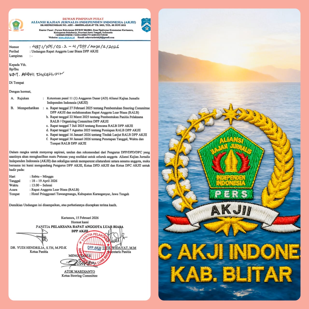 Kabupaten Blitar — Aliansi Kajian Jurnalis Independen Indonesia (AKJII) bersiap menggelar Rapat Anggota Luar Biasa (RALB) yang dijadwalkan berlangsung pada 18-19 April 2026.