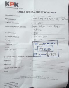 “Hari ini kami mendatangi Gedung KPK untuk menyerahkan dokumen Laporan kami terkait Dugaan adanya aliran dana atau Gratifikasi dalam proses Seleksi sampai pengangkatan Para petinggi di tubuh Perumda Tirta Bhagasasi”, Ucap Eko.